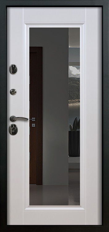 Металлическая входная дверь с зеркалом внутри №1 создана как универсальное решение для дома, квартиры или офиса, где важны и безопасность, и комфорт. Каркас выполнен из прочной профильной трубы с металлическим листом толщиной 2 мм и рёбрами жёсткости, что обеспечивает устойчивость к механическим воздействиям и долгий срок службы. Снаружи дверь покрыта порошковой окраской, стойкой к атмосферным влияниям и царапинам, а изнутри отделана МДФ с ПВХ-покрытием, которое сохраняет свежий вид даже при интенсивной эксплуатации. Встроенное зеркало превращает полотно в практичный элемент интерьера: оно визуально расширяет пространство прихожей и избавляет от лишних предметов мебели. Два контура уплотнителей защищают от пыли и сквозняков, а блокираторы усиливают общую надёжность конструкции. Модель не оснащена терморазрывом, зато отличается продуманным балансом практичности и доступной цены, оставаясь удобным вариантом для повседневного использования. Металлическая входная дверь с зеркалом внутри №1 от производителя: быстрое изготовление и монтаж в Щелково, индивидуальные размеры, широкий выбор материалов и фурнитуры, официальная гарантия до 10 лет.