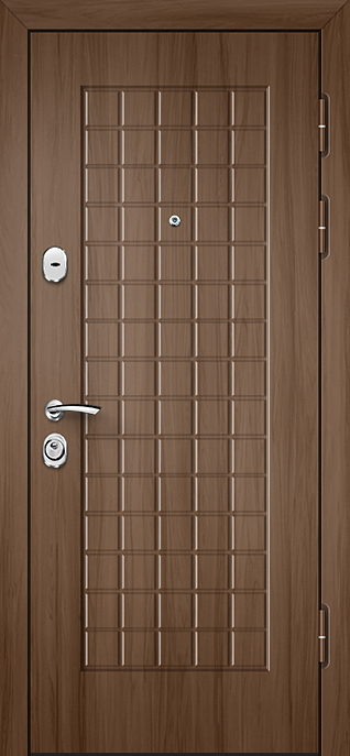 Стальная дверь для дома №21 сочетает лаконичный внешний облик с серьёзной внутренней прочностью. Каркас собран из профильной трубы и усилен рёбрами жёсткости, а металлический лист толщиной 2 мм надёжно защищает от механических воздействий. Внутренняя и внешняя отделка выполнена плитами МДФ — материалом, который одинаково хорошо смотрится как в частном доме, так и в квартире или офисе. Такая облицовка устойчива к повседневным нагрузкам, сохраняет форму и позволяет двери годами выглядеть аккуратно. Два контура уплотнителей удерживают тепло и блокируют сквозняки, а блокираторы повышают уровень безопасности. Несмотря на отсутствие терморазрыва, модель остаётся практичным выбором для эксплуатации в стандартных условиях. Строгий дизайн двери легко впишется в современную архитектуру, а прочная конструкция обеспечит уверенность и долговечность. Стальная дверь для дома №21 от производителя: быстрое изготовление и монтаж в Щелково, индивидуальные размеры, широкий выбор материалов и фурнитуры, официальная гарантия до 10 лет.