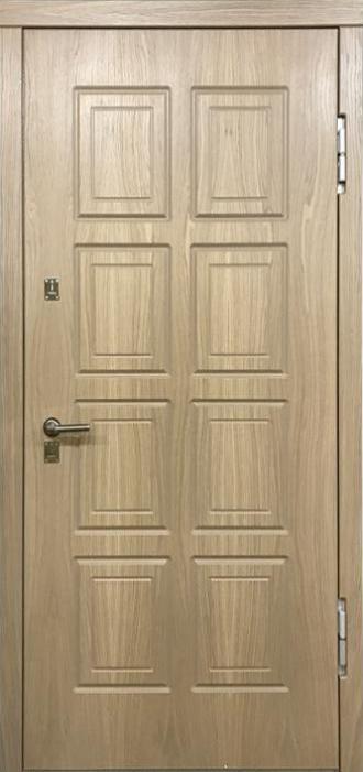 Дверь входная в частный дом №44 сочетает в себе надёжность стальной основы и практичность декоративной отделки. Каркас и полотно из профильной трубы с листом металла толщиной 2 мм обеспечивают устойчивость к нагрузкам, а рёбра жёсткости повышают общую прочность конструкции. В коробке и полотне предусмотрен терморазрыв, который предотвращает промерзание и помогает сохранять тепло внутри помещения, что особенно важно для частных домов и коттеджей. Снаружи и внутри дверь облицована МДФ-накладками, материалом, устойчивым к мелким повреждениям и удобным в уходе, благодаря чему изделие долго сохраняет презентабельный вид. Двойной контур уплотнителей блокирует сквозняки и влагу, создавая дополнительный комфорт. Для безопасности установлены два замка — сувальдный Просам и цилиндровый Мосрентген, оба с трёхригельной системой. Модель легко адаптируется под пожелания заказчика: можно изменить отделку или добавить декоративные элементы, превращая дверь в индивидуальное решение для дома, офиса или квартиры. Дверь входная в частный дом №44 от производителя: быстрое изготовление и монтаж в Щелково, индивидуальные размеры, широкий выбор материалов и фурнитуры, официальная гарантия до 10 лет.