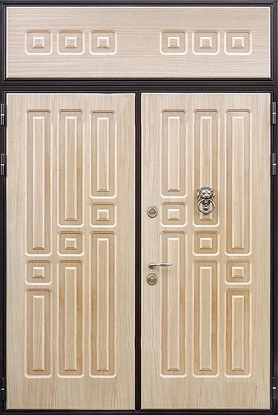 Двустворчатая дверь с отделкой металлофиленкой и фрамугой №21 — это гармоничное сочетание прочности и эстетики. МДФ ПВХ отделка, как снаружи, так и внутри, обеспечивает стойкость к внешним воздействиям и механическим повреждениям, сохраняя первоначальный вид на долгое время. Профильная труба 50х25 мм в конструкции каркаса и полотна гарантирует высокую прочность, а ребра жесткости из труб 40х25 мм увеличивают устойчивость к внешним нагрузкам. Замки с тремя ригелями от «Просам» и «Мосрентген» обеспечивают необходимый уровень безопасности, а резиновый уплотнитель с двумя контурами эффективно защищает от сквозняков и шума. Дверь, не оснащённая терморазрывом, тем не менее обеспечивает надёжную защиту, а возможность добавить зеркала, стеклопакет или кованые элементы позволяет ещё больше персонализировать её внешний вид. Двустворчатая дверь с отделкой металлофиленкой и фрамугой №21 от производителя: быстрое изготовление и монтаж в Щелково, индивидуальные размеры, широкий выбор материалов и фурнитуры, официальная гарантия до 10 лет.