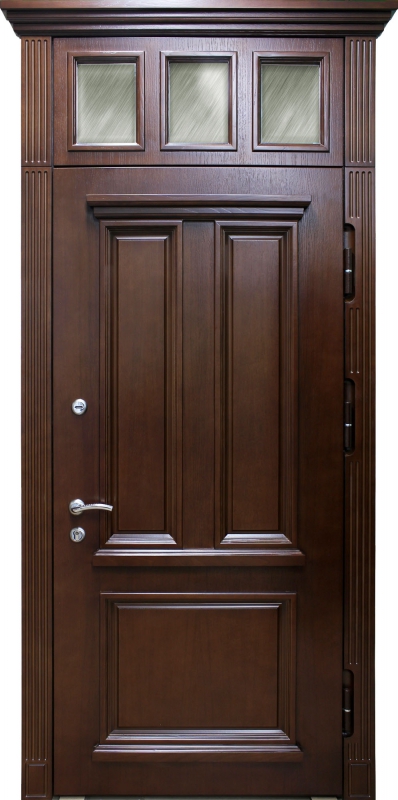 Дверь с сувальдным замком и фрамугой №34 идеально сочетает в себе стиль и надежность. Панель из натурального дерева, использованная как для внешней, так и для внутренней отделки, придает двери благородный и элегантный вид, делая её отличным выбором для помещений с классическим или современным интерьером. Каркас двери выполнен из профильной трубы 50х25 мм и усилен ребрами жесткости, что гарантирует прочность конструкции. Замки от производителей "Просам" и "Мосрентген" с тремя ригелями обеспечивают высокий уровень безопасности. Дверь оснащена уплотнителями с двумя контурами, что гарантирует отличную герметичность, а возможность замены замков и добавления кованых элементов делает её адаптируемой под любые требования. Кроме того, дверь можно дополнить зеркалом, стеклопакетом или видеодомофоном для еще большего комфорта. Входная дверь с сувальдным замком и фрамугой №34 от производителя: быстрое изготовление и монтаж в Щелково, индивидуальные размеры, широкий выбор материалов и фурнитуры, официальная гарантия до 10 лет.