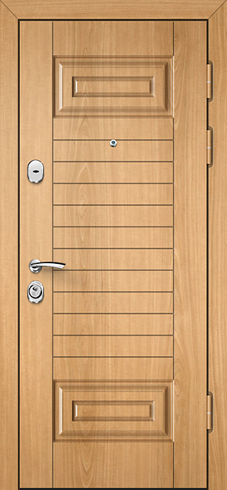 Металлическая конструкция с листом стали толщиной 2 мм и жёстким каркасом из профильной трубы формирует основу, которая не подведёт ни в квартире, ни в офисе. Два контура резинового уплотнителя делают закрывание плотным, уменьшая шум и сквозняки, а наличие блокираторов повышает уровень безопасности. Внешняя и внутренняя отделка выполнена из МДФ ПВХ — материал прочный, устойчивый к мелким повреждениям и сохраняющий аккуратный вид при ежедневной эксплуатации. В центре внимания здесь Железная дверь в квартиру №78, сочетающая надёжность стали и декоративные возможности панелей, которые можно комбинировать по вкусу. Комплект замков представлен сувальдным Просам и цилиндровым Мосрентген, при этом доступна замена на более сложные механизмы вплоть до биометрических систем. Конструкцию легко дополнить зеркалом, стеклопакетом, коваными элементами или видеодомофоном, превратив строгую дверь в удобный и технологичный элемент современного жилья. Железная дверь в квартиру №78 от производителя: быстрое изготовление и монтаж в Щелково, индивидуальные размеры, широкий выбор материалов и фурнитуры, официальная гарантия до 10 лет.