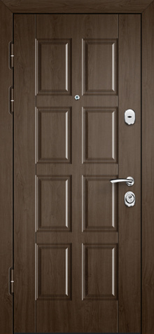 Надёжность и строгая функциональность – вот что олицетворяет входная дверь в квартиру стал №77. Её прочная основа выполнена из профильной трубы и стального листа толщиной 2 мм с дополнительными рёбрами жёсткости, что делает конструкцию устойчивой к нагрузкам и долговечной. Внутри и снаружи использованы накладки МДФ, практичный материал, который сохраняет аккуратный вид, не боится случайных царапин и хорошо подходит для помещений любого типа. Два замка — сувальдный Просам и цилиндровый Мосрентген — обеспечивают многоуровневую защиту, а при желании их можно заменить на более современные или даже умные электронные механизмы. Дверь комплектуется двумя контурами резинового уплотнителя, которые препятствуют проникновению сквозняков и уличного шума, а при необходимости конструкция легко дополняется шумо- и теплоизоляцией. Такой вариант одинаково уместен в квартире, частном доме или офисе, где ценят баланс безопасности и практичности. Входная дверь в квартиру стал №77 от производителя: быстрое изготовление и монтаж в Щелково, индивидуальные размеры, широкий выбор материалов и фурнитуры, официальная гарантия до 10 лет.