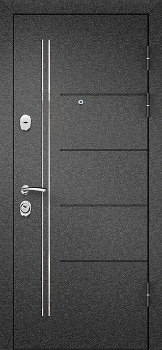 Порошковая входная дверь №65 объединяет прочность металла и практичную отделку, делая её универсальным выбором для квартиры, офиса или подъезда. Каркас и полотно собраны из профильной трубы, усиленной ребрами жесткости, а стальной лист толщиной 2 мм придает конструкции дополнительную устойчивость к нагрузкам. Снаружи нанесено молотковое напыление — покрытие, стойкое к царапинам и атмосферным воздействиям, благодаря чему дверь долго сохраняет аккуратный внешний вид. Внутренняя сторона оформлена ламинированными панелями, создающими ощущение тепла и комфорта. Два резиновых контура уплотнения помогают отсечь сквозняки и пыль, при необходимости можно добавить шумо- и теплоизоляцию. Модель №65 сочетает надежность и лаконичность, а её внешний вид гармонично впишется как в жилое пространство, так и в деловую среду. Порошковая входная дверь №65 от производителя: быстрое изготовление и монтаж в Щелково, индивидуальные размеры, широкий выбор материалов и фурнитуры, официальная гарантия до 10 лет.