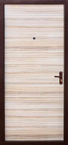 Металлическая дверь с шумоизоляцией — это многослойный «сэндвич»: стальное полотно, внутри — наполнитель из базальтовых/минеральных плит или ППУ, изнутри — декоративная панель (МДФ/шпон/ПВХ). Работает связка: металл отражает и частично рассеивает звук, пористый наполнитель гасит его в толщу, панели добавляют массу и плотность.