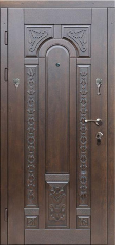 Дверь входная металлическая термо №13 – это надежное решение для частного дома или коттеджа, где важна не только безопасность, но и сохранение тепла. Благодаря терморазрыву, который сделан как в коробке, так и в полотне, дверь эффективно защищает от холодных ветров и перепадов температуры, сохраняя комфорт внутри помещения. Внешняя отделка из МДФ с эффектом шпона и внутренняя накладка из того же материала придают двери современный и элегантный вид, а также делают её устойчивой к внешним воздействиям. Толщина металла 1,5 мм и усиленная конструкция с ребрами жёсткости из профильных труб обеспечивают долговечность и надежность. Тройной контур магнитного уплотнения и пенопласт повышенной плотности создают отличную шумо- и теплоизоляцию, делая эту дверь идеальной для использования в условиях изменчивого климата. Противосъёмные блокираторы добавляют дополнительную защиту. Дверь входная металлическая термо №13 от производителя: быстрое изготовление и монтаж в Щелково, индивидуальные размеры, широкий выбор материалов и фурнитуры, официальная гарантия до 10 лет.