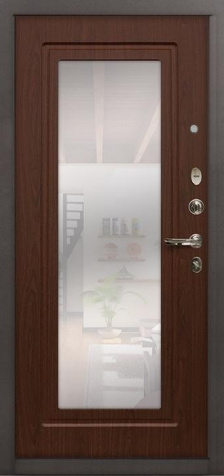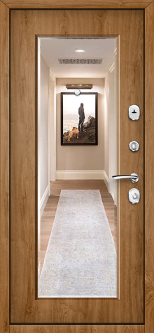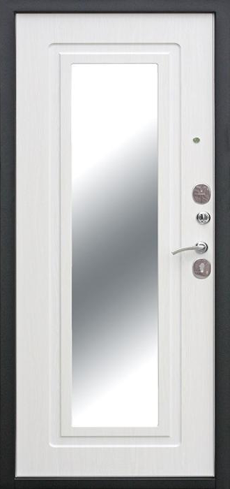 Железная дверь входная в квартиру с зеркалом №68 сочетает в себе надежность металла и практичность продуманного дизайна. Снаружи она покрыта молотковым напылением, известным своей устойчивостью к сколам и царапинам, а также способностью долго сохранять аккуратный внешний вид даже при активной эксплуатации. Внутренняя сторона оформлена накладкой из МДФ, что делает её гармоничным элементом интерьера и добавляет уюта. Встроенное зеркало не только удобно в повседневной жизни, но и визуально расширяет пространство прихожей. Основа конструкции выполнена из профильных труб с листом стали толщиной 2 мм, что гарантирует прочность и долговечность. Два контура уплотнения защищают от сквозняков и уличного шума, а наличие терморазрыва в коробке и полотне препятствует промерзанию в холодное время года. Такая дверь станет надежным и функциональным решением для квартиры, офиса или загородного дома. Железная дверь входная в квартиру с зеркалом №68 от производителя: быстрое изготовление и монтаж в Щелково, индивидуальные размеры, широкий выбор материалов и фурнитуры, официальная гарантия до 10 лет.