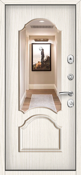 Входная дверь с зеркальной вставкой для прихожей №21 — это не просто надежное, но и стильное решение для частных домов, квартир и офисов. Благодаря прочному каркасу из профильной трубы 50х25 мм и металлическому полотну толщиной 2 мм, дверь гарантирует долговечность и высокую степень защиты. Внешняя отделка с порошковым напылением не только добавляет эстетичности, но и защищает от атмосферных воздействий, а внутренняя отделка из панелей МДФ ПВХ устойчива к механическим повреждениям. Вставка зеркала на двери добавляет современности и практичности, расширяя пространство прихожей. Два контура резинового уплотнителя эффективно предотвращают попадание холода и шума. Дверь оборудована двумя замками, что повышает безопасность. Также можно заменить замки на более современные модели и добавить опции, такие как стеклопакет или видеодомофон, что делает эту модель еще более универсальной. Входная дверь с зеркальной вставкой для прихожей №21 от производителя: быстрое изготовление и монтаж в Щелково, индивидуальные размеры, широкий выбор материалов и фурнитуры, официальная гарантия до 10 лет.