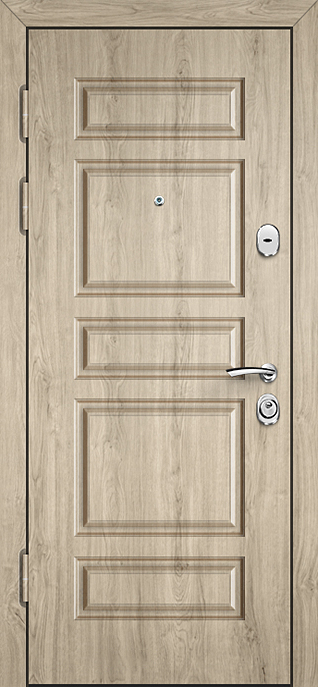 Входная дверь с ручками и замками высокого класса защиты №36 станет надежным выбором для вашего частного дома, квартиры или офиса. Конструкция из профильной трубы 50х25 мм и листа металла толщиной 2 мм обеспечивает высокую прочность и стойкость к внешним воздействиям. Ребра жесткости из труб 40х25 мм усиливают конструкцию, делая дверь устойчивой к деформации. Внешняя отделка с порошковой окраской не только придает дверям элегантный вид, но и обеспечивает стойкость к механическим повреждениям и атмосферным воздействиям. Внутренняя отделка из плиты МДФ дарит тепло и уют. Резиновый уплотнитель с двумя контурами гарантирует отличную герметичность. Для дополнительной безопасности предусмотрены блокираторы и замки высокого класса защиты. Благодаря терморазрыву в коробке и полотне, дверь эффективно защищает от перепадов температуры, обеспечивая комфорт в помещении. Входная дверь с ручками и замками высокого класса защиты №36 от производителя: быстрое изготовление и монтаж в Щелково, индивидуальные размеры, широкий выбор материалов и фурнитуры, официальная гарантия до 10 лет.