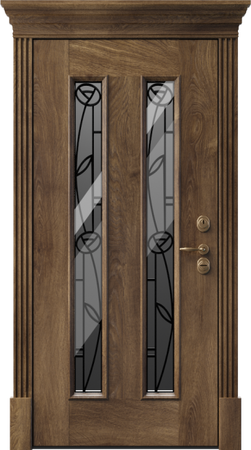 Надежность и эстетика в одной конструкции — именно так можно описать входную дверь с ковкой и стеклом №12. Она рассчитана на установку в частных домах и коттеджах, где важно подчеркнуть не только защиту, но и выразительный облик фасада. Основа выполнена из стали толщиной 2 мм с усилением профильными трубами и ребрами жесткости, что гарантирует прочность и долговечность. Два контура уплотнителя создают плотное прилегание, снижая уровень уличного шума и препятствуя проникновению влаги. Наружная и внутренняя отделка выполнена плитами МДФ, материал устойчив к царапинам и перепадам температуры, сохраняя аккуратный вид долгие годы. Особую роль играют стеклянные вставки и изящные кованые элементы, превращающие дверь в декоративный акцент парадного входа. За безопасность отвечают замки Kale Kilit с разными системами запирания, которые при желании можно заменить на другие модели, включая современные электронные варианты. Входная дверь с ковкой и стеклом №12 от производителя: быстрое изготовление и монтаж в Щелково, индивидуальные размеры, широкий выбор материалов и фурнитуры, официальная гарантия до 10 лет.