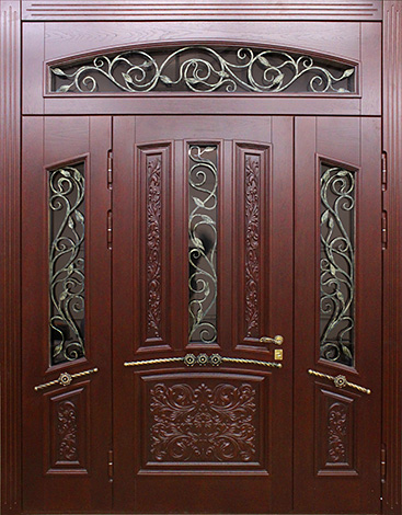 Эта модель создана для тех, кто ценит солидность и внушительный внешний вид парадного входа. Натуральный массив дуба в отделке придаёт дверному полотну статусный характер, а стеклянные вставки позволяют добавить света и лёгкости фасаду дома. При этом основа конструкции выполнена из прочной профильной трубы с использованием листа металла толщиной 2 мм и ребер жёсткости, что гарантирует надёжность и устойчивость к взлому. Двустворчатая входная дверь со стеклом №39 удобна для широких проёмов коттеджей и частных домов, обеспечивая не только безопасность, но и удобство при внесении крупногабаритной мебели. Итальянские замки Cisa сочетают в себе высокий класс защиты и плавность хода механизма, а наличие двух контуров уплотнения дополнительно защищает от сквозняков. Возможность комбинировать отделку, добавить зеркало, витраж или кованые элементы делает модель гибкой для индивидуального дизайна и подчеркивает её представительский статус. Двустворчатая входная дверь со стеклом №39 от производителя: быстрое изготовление и монтаж в Щелково, индивидуальные размеры, широкий выбор материалов и фурнитуры, официальная гарантия до 10 лет.