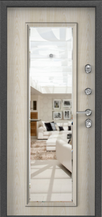 Сочетание прочной конструкции и декоративных решений делает эту модель особенно практичной для частного дома или квартиры. Каркас и полотно выполнены из профильной трубы с листом стали толщиной 2 мм, усиленные рёбрами жёсткости и блокираторами, что обеспечивает высокую надёжность. Два контура резинового уплотнителя препятствуют проникновению влаги и сквозняков, а порошковое напыление на внешней поверхности защищает металл от коррозии и сохраняет аккуратный вид даже при воздействии осадков и солнечного света. Внутренняя отделка панелями МДФ ПВХ создаёт уютный интерьерный акцент и устойчива к повседневным нагрузкам. Дверь входная металлическая уличная в дом №12 дополнена зеркалом, которое делает её не только функциональной, но и более удобной в быту. Для безопасности предусмотрены два замка российского производства — сувальдный Просам и цилиндровый Мосрентген, каждый с тремя ригелями. Дополнительно дверь можно оснастить стеклопакетом или коваными элементами, превратив её в индивидуальное решение для конкретных задач. Дверь входная металлическая уличная в дом №12 от производителя: быстрое изготовление и монтаж в Щелково, индивидуальные размеры, широкий выбор материалов и фурнитуры, официальная гарантия до 10 лет.
